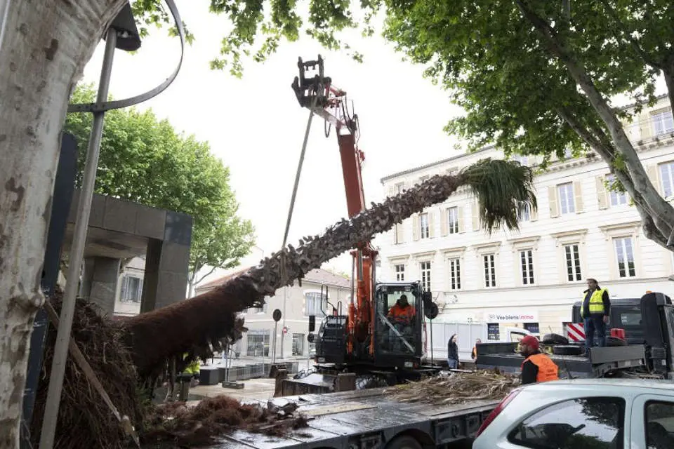 Il fait environ 7 mètres de haut et est âgé d’une quarantaine d’années. Le nouveau palmier de l’avenue Carnot est planté ce jeudi matin. Un palmier de type Washingtonia – comme celui de la Place du Marché planté le 18 avril – qui remplace celui qui avait été abattu en septembre 2021, victime, lui aussi, du charançon rouge (insecte coléoptère qui détruit les palmiers en les rongeant de l’intérieur).