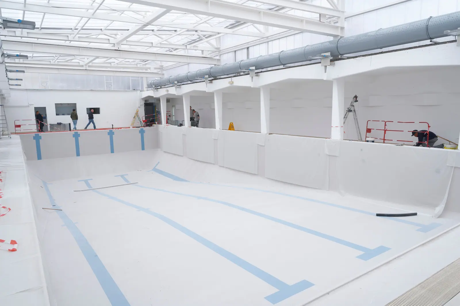 Place ensuite à la reprise de toutes les installations techniques de traitement de l’eau grâce au remplacement des filtres et de tout le système de circulation de l’eau (pompe, vanne, thermostat) avec un local technique lui aussi refait à neuf.