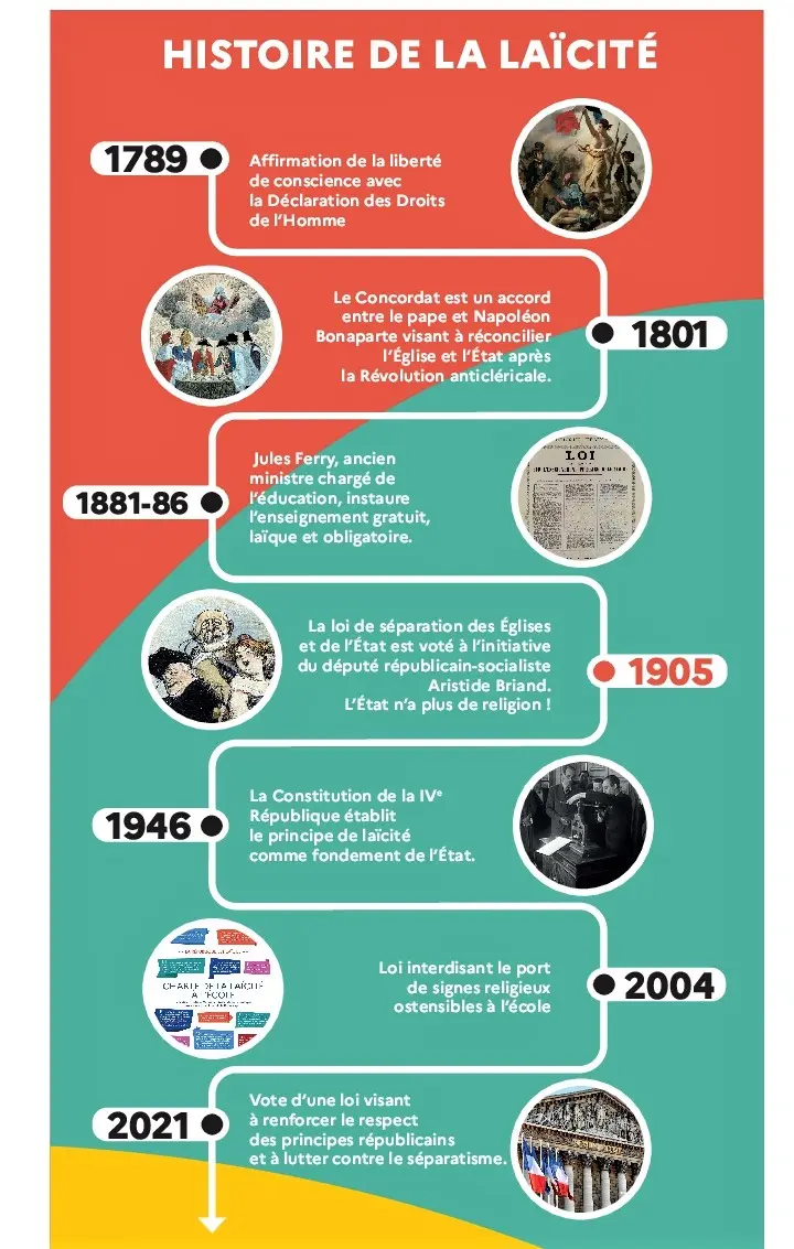 La loi de séparation des Églises et de l’État, dite aussi « loi de 1905 », est indissociable du principe de laïcité. Inscrite dans la Constitution, la laïcité est un principe républicain. Elle permet notamment de croire ou de ne pas croire, de pratiquer ou de changer sa religion et ce, tant que cela ne va pas à l’encontre des lois de la République.