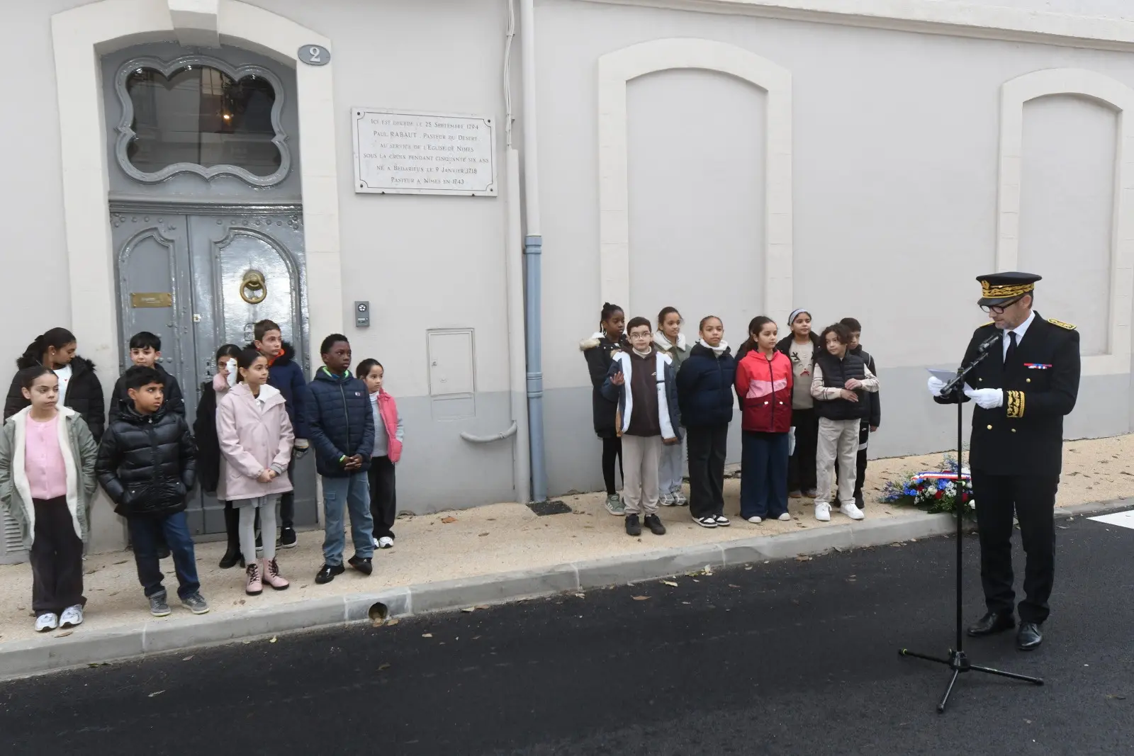 Après son discours, aux côtés de Monique Boissière, conseillère déléguée aux Armées et au Monde combattant, Daniel-Jean Valade, adjoint délégué à la Culture, Emmanuel Carrière, adjoint délégué aux Aménagements urbains, à la Voirie et à l'Accessibilité et d’autres personnalités locales, le Préfet du Gard a ensuite déposé une gerbe devant la plaque commémorative en l’honneur de Jean-Paul Rabaut-Saint-Etienne, au numéro 2 de la rue éponyme. Défenseur de la liberté religieuse, ce membre de l’Assemblée nationale et de la Convention a lutté pour faire disparaître le régime d’exception qui excluait les protestants de la société française depuis la Révocation de l’Édit de Nantes (1685).