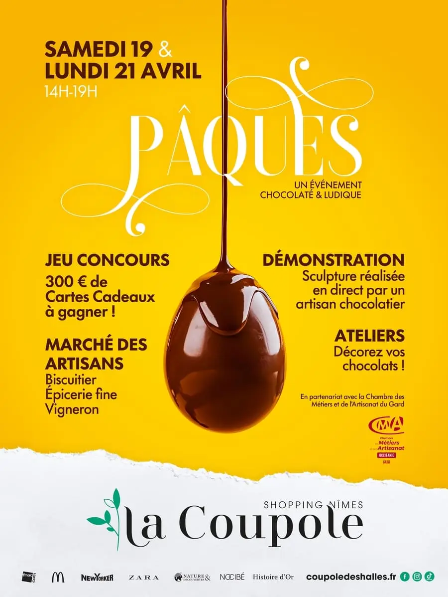 Le Centre Commercial La Coupole des Halles propose un évènement dédié aux plaisirs du chocolat et à l’artisanat local ! Au programme : une démonstration de sculpture en chocolat sera réalisée par un artisan chocolatier sous vos yeux et partagera ses secrets de fabrication : moulage, décoration et techniques artisanales, des ateliers participatifs pour s’initier à la décoration, un marché de créateurs avec un artisan biscuitier, un artisan de spécialités d’épicerie fine et un artisan vigneron qui vous feront découvrir leurs produits et savoir-faire.