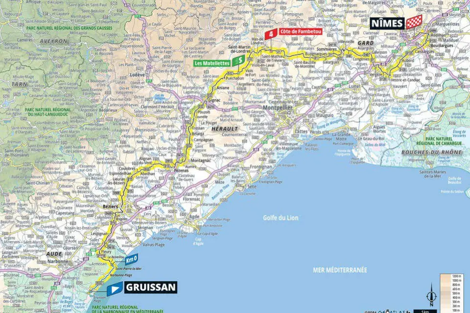 La carte de l’étape Gruissan-Nîmes du 16 juillet :