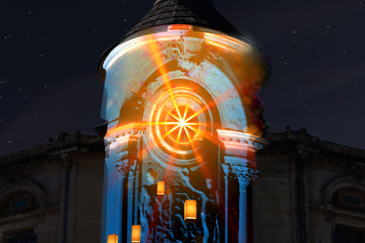 L’horloge du lycée Daudet se pare quant à elle de lumières. Dans un monde figé par le froid de l’hiver, les lumières se sont éteintes depuis bien longtemps. Mais quelque part, une petite étincelle de vie s’éveille… Elle entreprend un voyage à travers les royaumes endormis de la lumière, rallumant une à une les flammes oubliées et insufflant à nouveau l’esprit de Noël. Un voyage onirique, sensoriel et poétique à travers les symboles lumineux de cette période féerique.