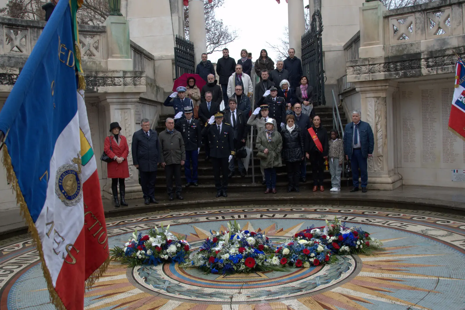 Claude de Girardi, Adjointe déléguée à la Mobilité, à la Circulation et au Stationnement, Monique Boissière, conseillère déléguée aux Armées et au Monde combattant et Richard Schieven, Adjoint délégué à la Sécurité, ont déposé la gerbe de la Ville de Nîmes au nom du Maire Jean-Paul Fournier.