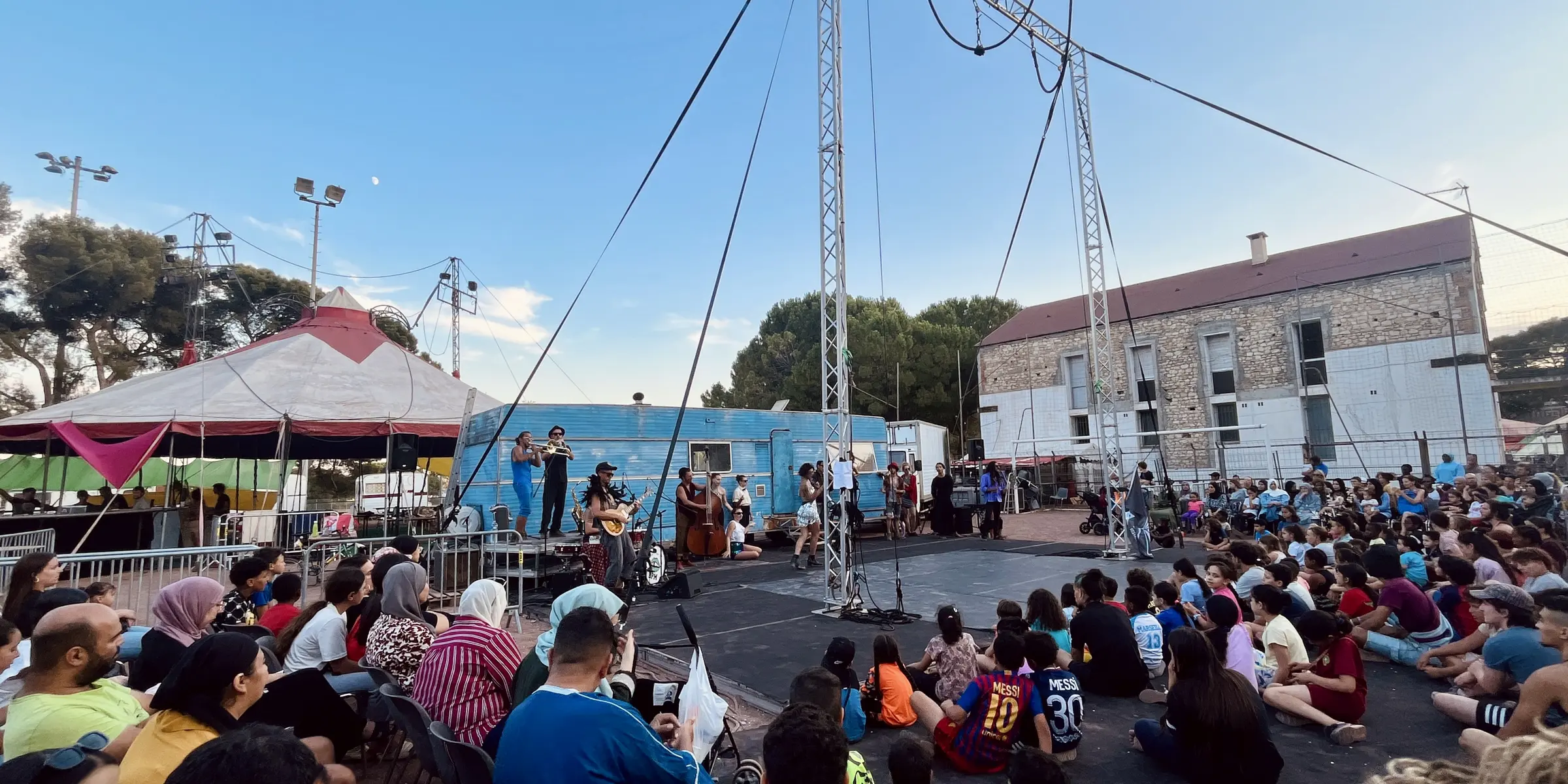 Imaginé et porté par l’école de cirque nîmoise Turbul’, l’événement déploie ses quatre chapiteaux sur les terrains de foot, transformant le stade en véritable terrain de jeu artistique. Chaque jour, de 18h à 20h30, place aux ateliers participatifs : jonglage, acrobaties, tissu aérien, échasses, monocycle… petits et grands sont invités à s’initier dans une atmosphère détendue et festive. Un salon de thé accueille les parents pendant que les enfants expérimentent les arts du cirque.
