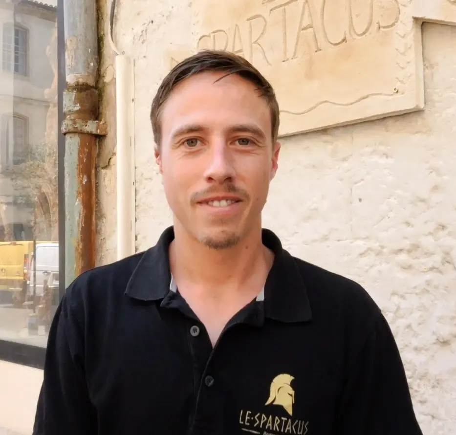 Originaire d’un petit village des Alpes et passé par une école hôtelière, Maxime s’est installé à Nîmes au début de l’année. « Je suis venu pour le climat mais aussi pour me lancer dans un nouveau projet de vie : à savoir reprendre le Spartacus, un restaurant et cave à vin, qui privilégie les produits locaux. » Le Spartacus propose un voyage entre tradition et modernité, une expérience gastronomique inspirée de l’Antiquité. « C’est une cuisine avec une touche gallo-romaine dans les assaisonnements ou dans les préparations, mais avec des techniques modernes. On veut donner de l’importance à l’histoire de la ville, culinairement parlant. » Maxime a rapidement pris ses marques dans la rue du Grand-Couvent. « Il y a du charme, on sent qu’il y a une histoire dans cette rue. Les commerçants et les voisins sont très sympas. C’est agréable de travailler ici. »