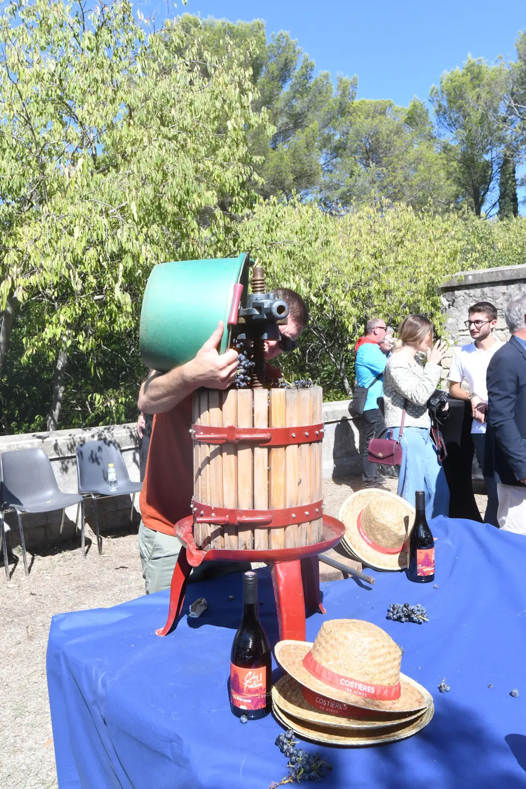 Après les discours, le raisin fraichement récolté passe au pressoir, devant les yeux des nombreux curieux qui ont fait le déplacement. La cinquième cuvée des Clos de la Fontaine n’a plus qu’à passer l’étape de la vinification. Le mot de la fin est pour Cyril Marès. "Vive la vigne, vive le vin et vive Nîmes."