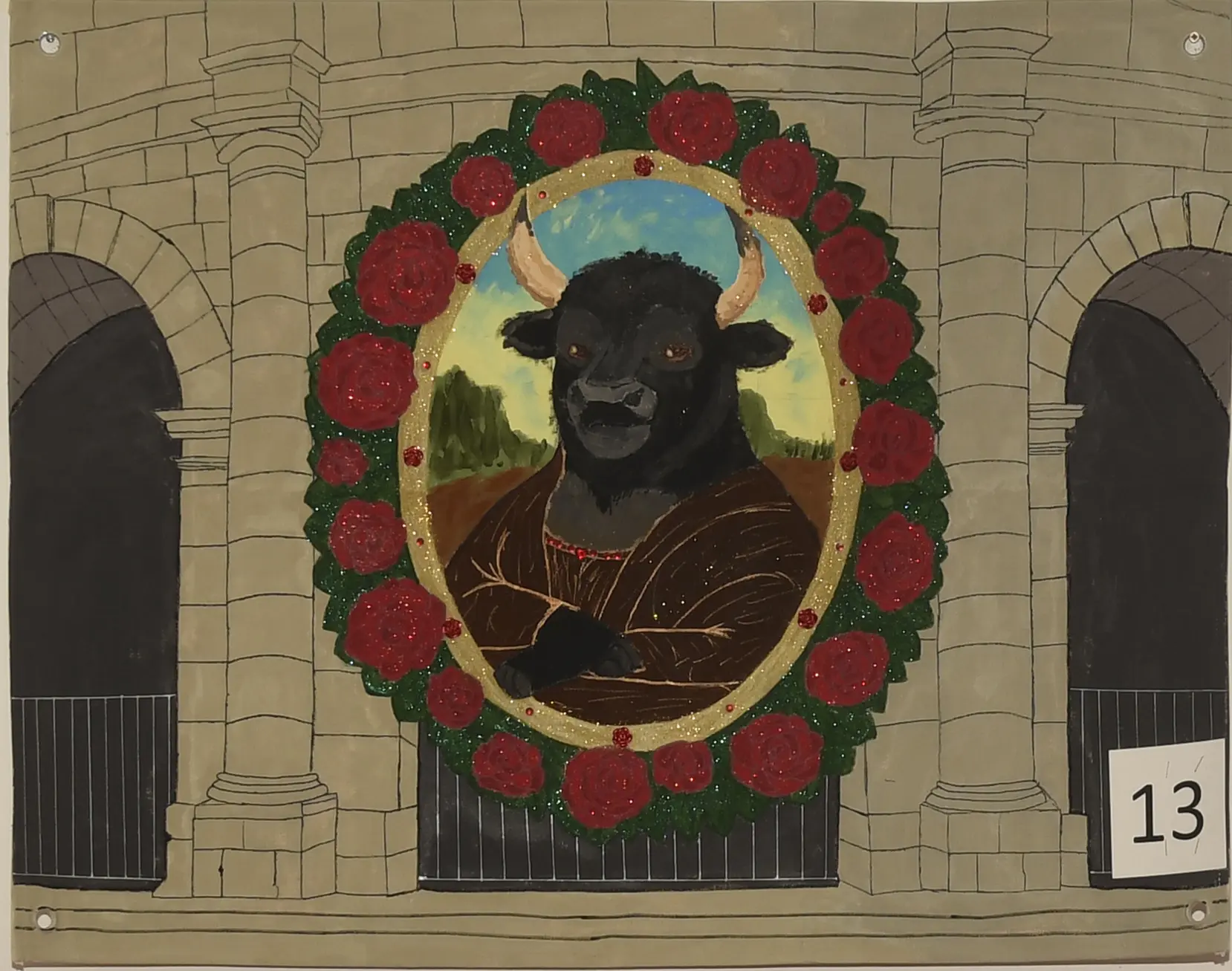 Pour la catégorie “prix du public enfant”, la lauréate est la toile n°13. Décidément, Léonard de Vinci continue d’inspirer les artistes : cette fois-ci, c’est La Joconde qui est revisitée… en toro !