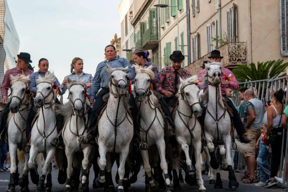 - 9h30, escorte des chevaux et des camions du stade des Costières vers l’esplanade