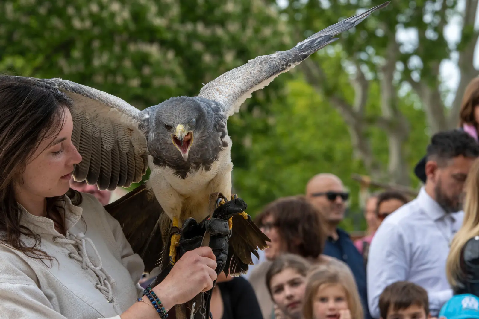 - Démonstration Fauconnerie (3 buses, 1 faucon, 1 hibou, 1 aigle, 1 vautour, 4 chouettes.)