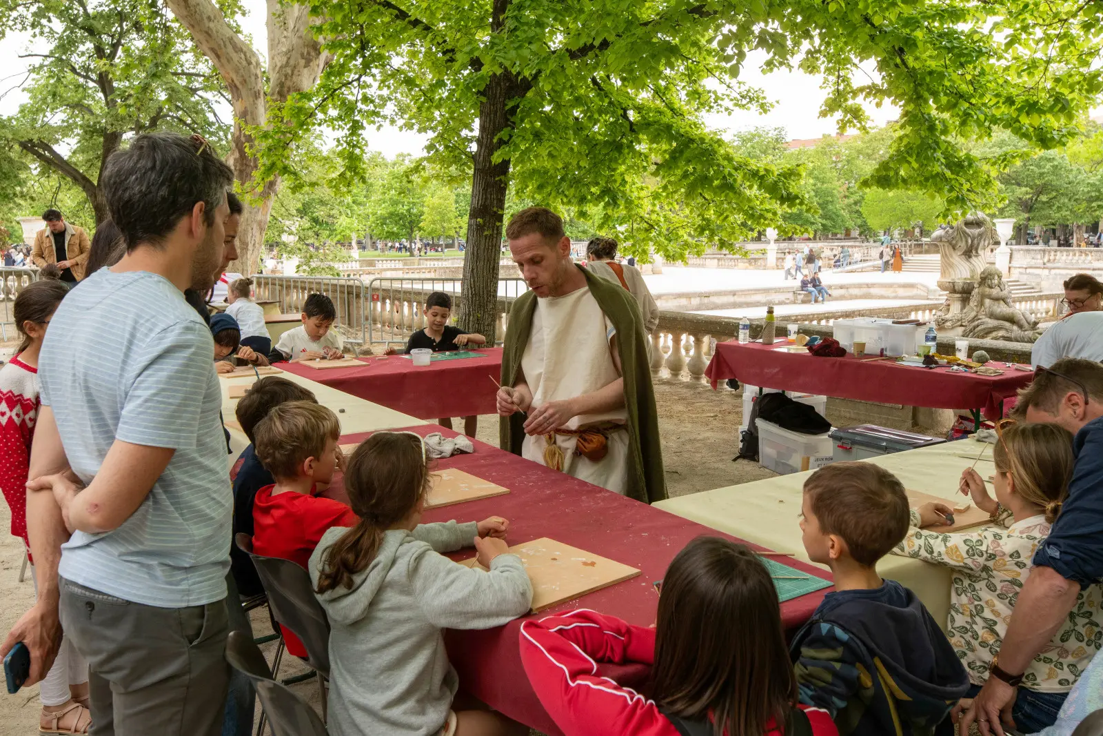 - Atelier “L’école des petits gladiateurs” samedi et dimanche à 10h45, 14h et 15h30, par la compagnie Acta. Les enfants de 6 à 12 ans participent à un entraînement de gladiateur tel qu’il pouvait exister dans l’Antiquité.