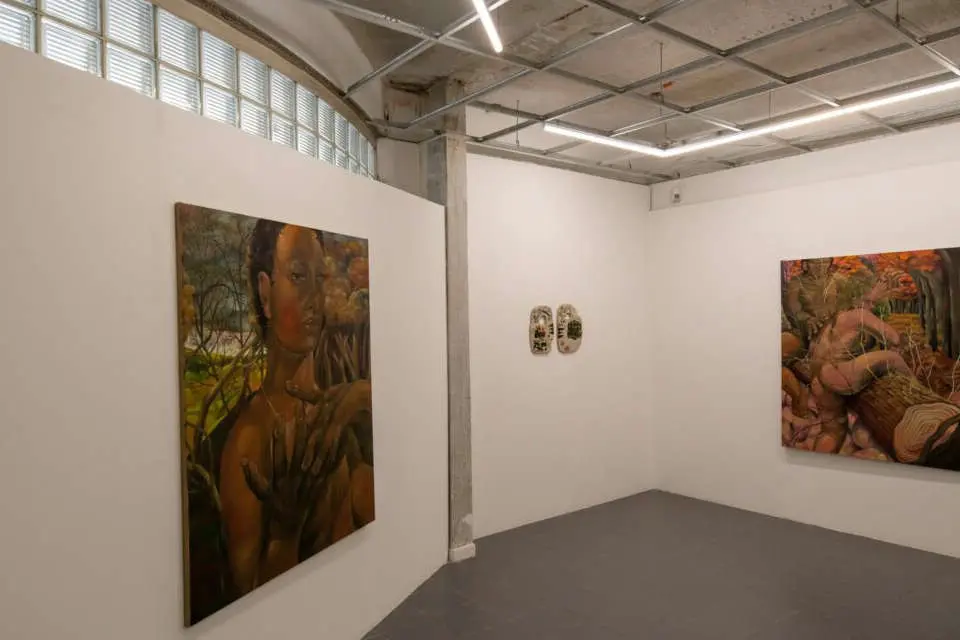 La paume, cette zone de la main située entre le poignet et la base des doigts, symbolise la capacité de saisir, de contenir et d’exprimer une attente, un doute ou un désir. Dans les peintures de Camille Bernard, les mains apparaissent pour transmettre ces émotions, tandis que chez Léna Gayaud, leur présence se manifeste subtilement à travers les empreintes laissées dans ses céramiques. Cependant, ce terme évoque également l’égarement et la perte, thèmes omniprésents dans les œuvres qui racontent des chemins parcourus, des marches et parfois des sentiments d’égarement physique et émotionnel. Le processus créatif de ces artistes s’inspire des parcours qu’elles effectuent dans leurs territoires respectifs, restituant ces expériences dans l’imaginaire narratif de leurs œuvres. Elles explorent l’idée du reste, de la trace, mais aussi du vide et de l’espace laissé après un passage, exprimant ainsi une prédiction intimidante d’une survie et d’un avenir incertain.