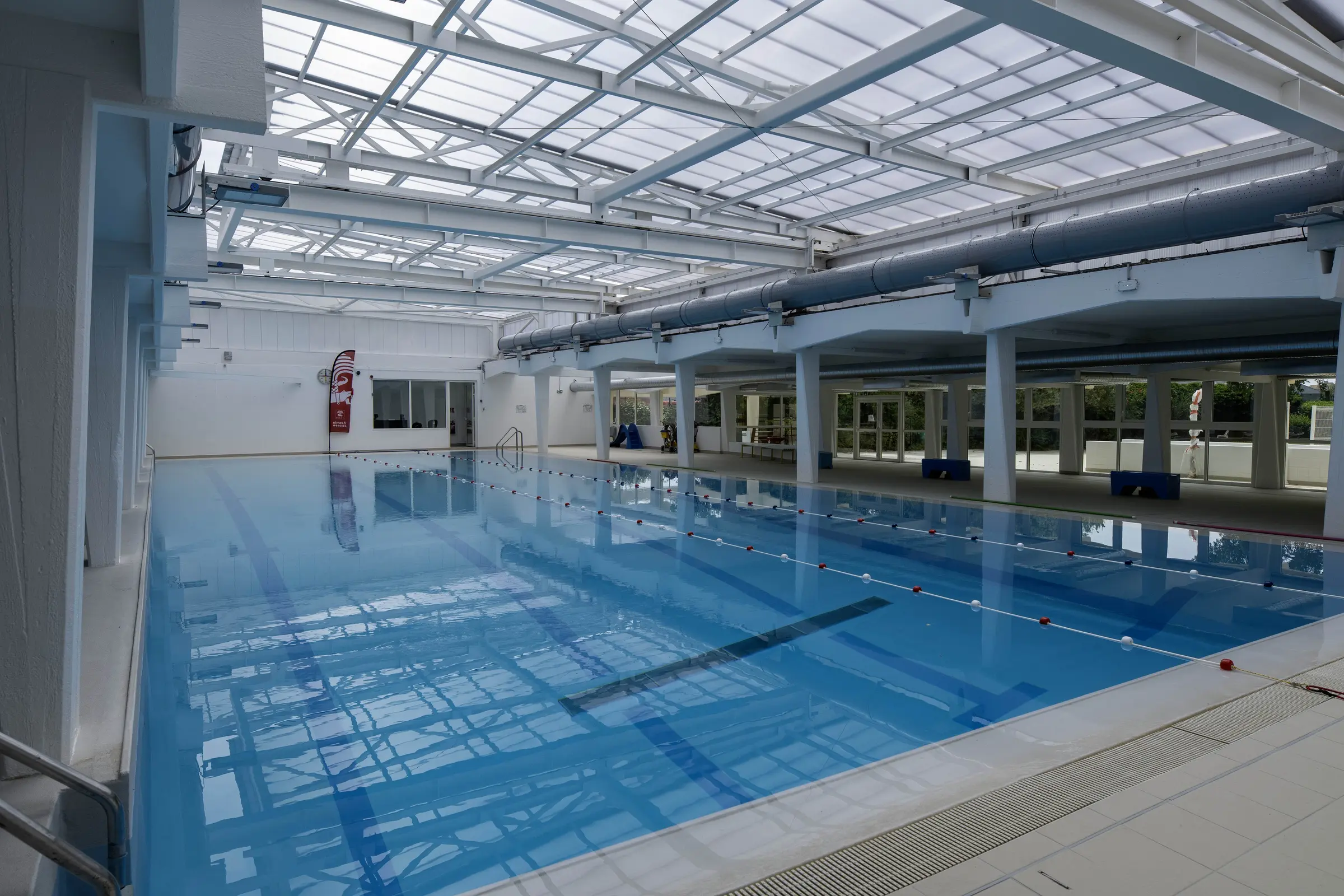 L'étanchéité du bassin a été traitée par l'application d'une résine Epoxy sur les bétons existant après dépose du carrelage. Les dimensions du bassin en longueur, largeur et profondeur ont été conservées : 25m x 10m et de profondeur de 1.70m à 3.50m.