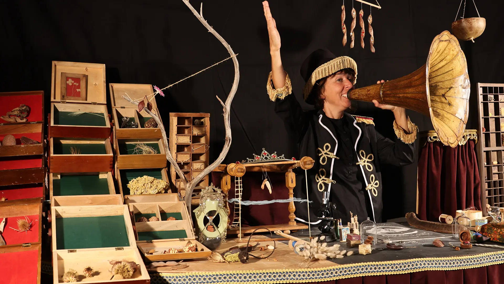 Une petite fille hérite de la merveilleuse collection de graines de sa grand-mère : elle deviendra botaniste ! Devenue grande, elle nous accueille dans son laboratoire de curiosité à l’allure d’une baraque de foire, pour raconter l’histoire hors du commun de sa grand-mère, amoureuse des graines et de Gino, avec lequel elle a fondé un cirque ! Le goûter est offert à l’issue du spectacle, à 16h, avant le second prévu à 17h (voir plus bas).