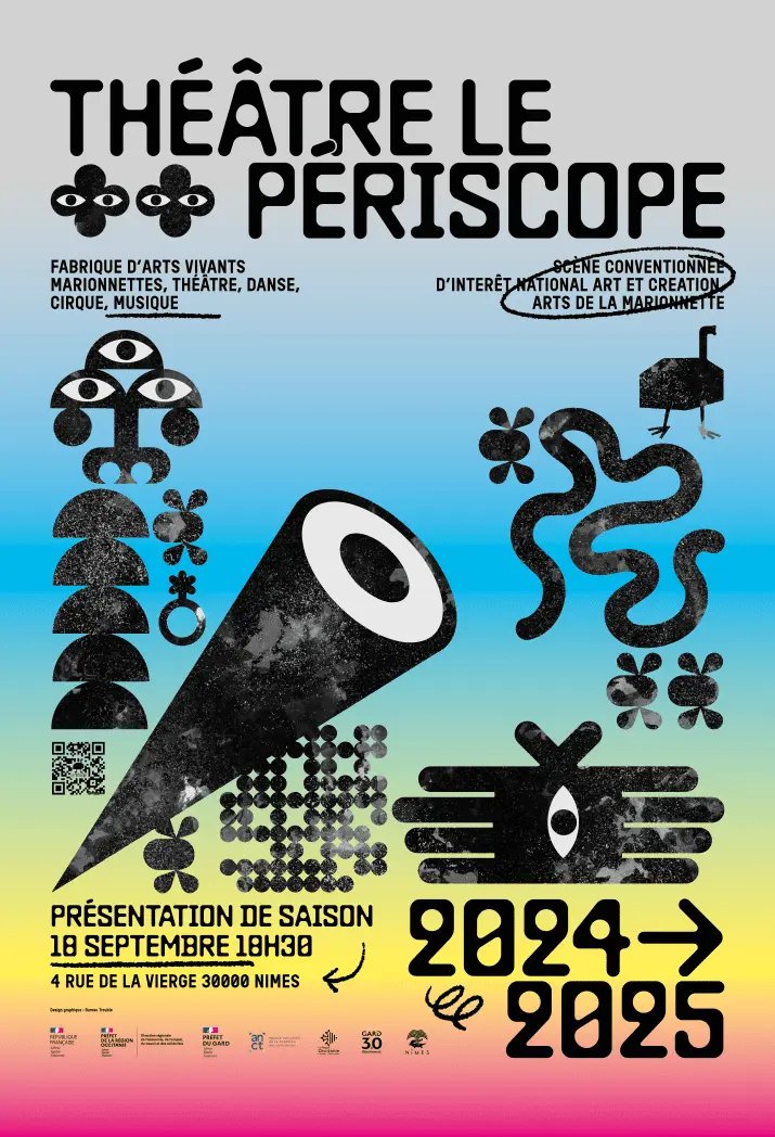 Au total, ce sont 20 spectacles, 36 représentations, 11 compagnies régionales, 8 spectacles jeunesse et 7 spectacles autour de l’art de la marionette qui forment la riche programmation du théâtre le Périscope à Nîmes pour la saison 24-25. Chaque rendez-vous est une fenêtre ouverte sur de nouveaux horizons, une invitation à explorer de nouveaux imaginaires à découvrir des univers insoupçonnés seul ou en famille.