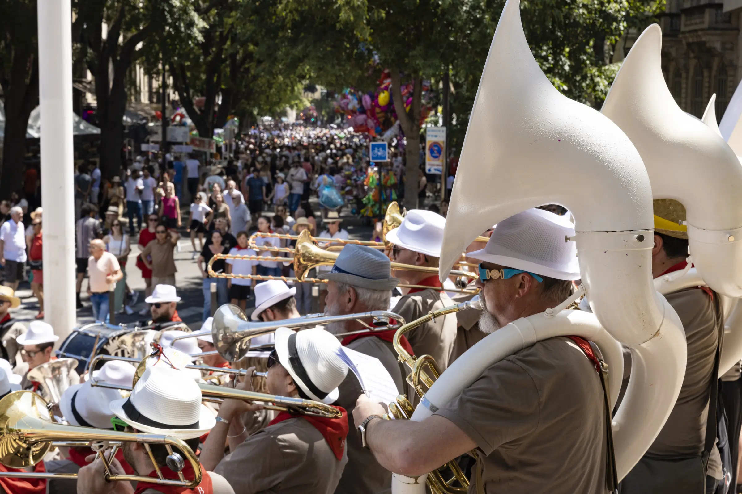 Depuis quelques années, les fanfares, bandas, peñas et autres compagnies de musique de rue sont de plus en plus nombreuses à l’occasion de la Feria de Nîmes. Elles déambulent du samedi au lundi sur les boulevards et dans les rues du centre-ville toute la journée. En 2026, lors du week-end de Pentecôte, elles sont une vingtaine à venir assurer le spectacle, avec notamment des habitués comme les peñas Del Fuego, l’Occitane et la Provençale.