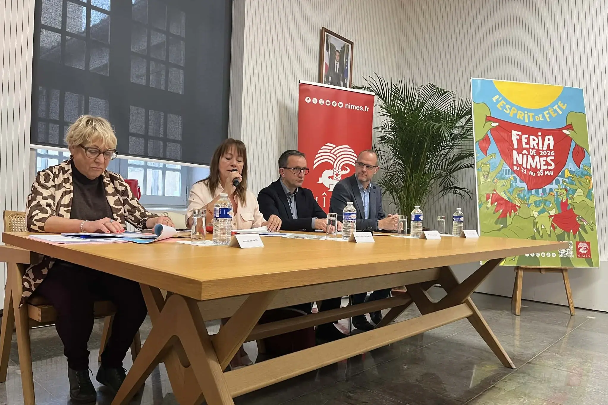 Ce jeudi 23 avril au mati, à l'Hôtel de Ville de Nîmes, le programme des festivités de la Feria de Pentecôte a été officiellement présenté en présence de Sylvette Fayet, Adjointe aux Tauromachies, Corine Giacometti, Adjointe aux Festivités et aux Grand événements, Emmanuel Dubois, Adjoint aux Commerces, aux Foires, aux Marchés et aux Halles de Nîmes, et Nicolas Nadal, Adjoint à la Sécurité, à la Tranquilité et à l'espace publics.