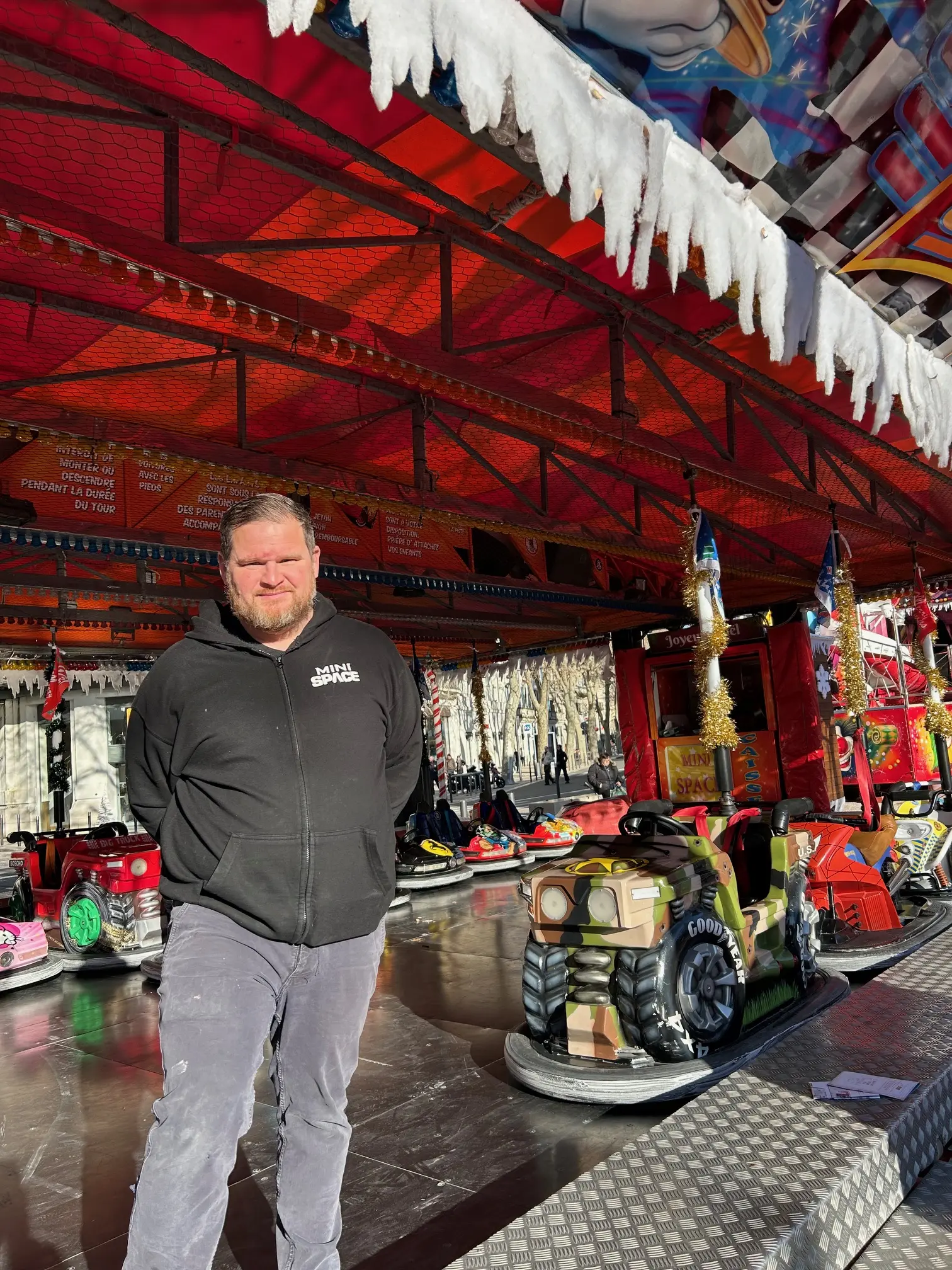 « Les hivers sont habituellement plus cléments mais malheureusement cette année, la pluie nous a joué des tours, constate Jean-Luc Boule, à la tête des 16 auto-tamponneuses du Mini-space, qu’il tient de ses parents, présents à Nîmes depuis plus de 40 ans. Je salue la proposition de la Ville de nous donner la possibilité de rester en place une semaine supplémentaire. Certains ne pourront pas poursuivre parce qu’ils ont d’autres obligations mais la majorité des attractions sera bien présente pour faire durer un peu plus le plaisir des familles. »