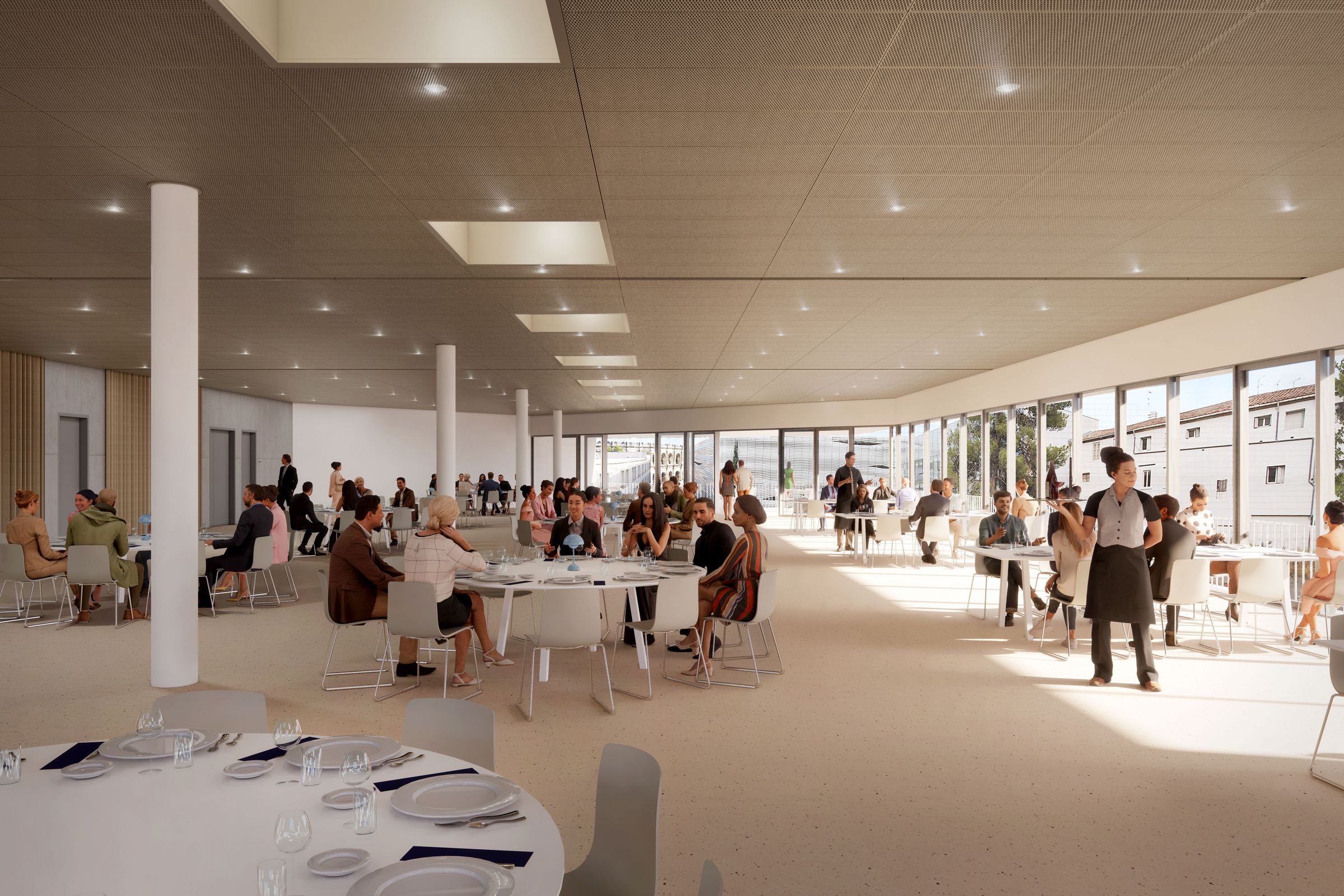 Au dernier niveau, l’espace de restauration dédié aux événements disposera d’une terrasse panoramique offrant une vue imprenable sur le Musée de la Romanité, son jardin archéologique et les arènes. Un espace de 600 m² entièrement modulable. Partiellement touché par un incendie survenu en juillet dernier, il sera prêt début 2026.