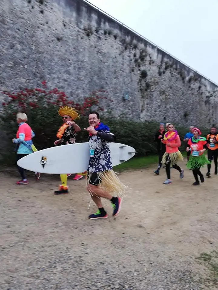 Soit, mais il s’agit quand même de réussir à trotter, non ? “Vous savez, je m’inscris sur la distance la plus courte : 9 ou 10 km, on y arrive toujours”, affirme celui qui pratique assidument la course à pied depuis l’âge de 14 ans, et affiche un bon paquet d’épreuves longue distance au compteur.
