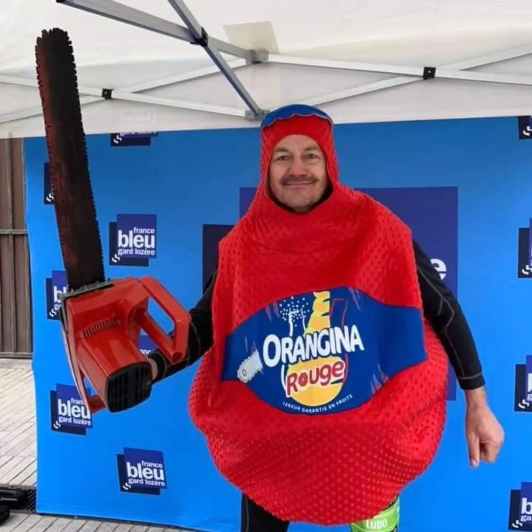 En costume fourré de loup ("j’ai crevé de chaud cette année-là") poursuivant un chaperon rouge, Orangina rouge (avec la tronçonneuse, s’il-vous-plaît), en surfeur hawaïen (avec la planche, forcément) ou encore, ça avait fait sensation, en poussant une brouette remplie de fleurs. Naturel, pour celui qui est devenu jardinier il y a quelques années après une reconversion professionnelle. “Ça m’amuse beaucoup, confie-t-il. Mon objectif, c’est d’aller toujours plus loin.”