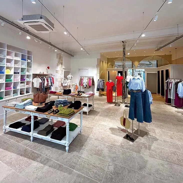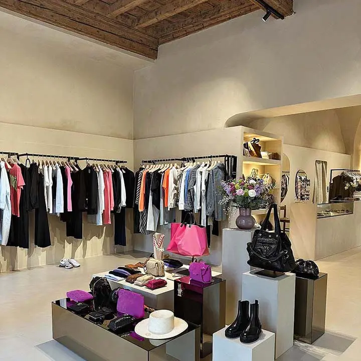 Ce vaste espace de vente, où ont été conservés le bois massif et la pierre pour une atmosphère chaleureuse, valorise des collections de prêt-à-porter féminin multi-marques. Les pièces sont rigoureusement sélectionnées au cœur de Paris pour une diversité de style, au gré des envies, et à prix abordables. « Nous nous engageons ici à rendre la mode accessible et exclusive. » Un point d’honneur est également mis sur l’accueil et le conseil personnalisé pour que chaque visite soit une expérience unique et mémorable.