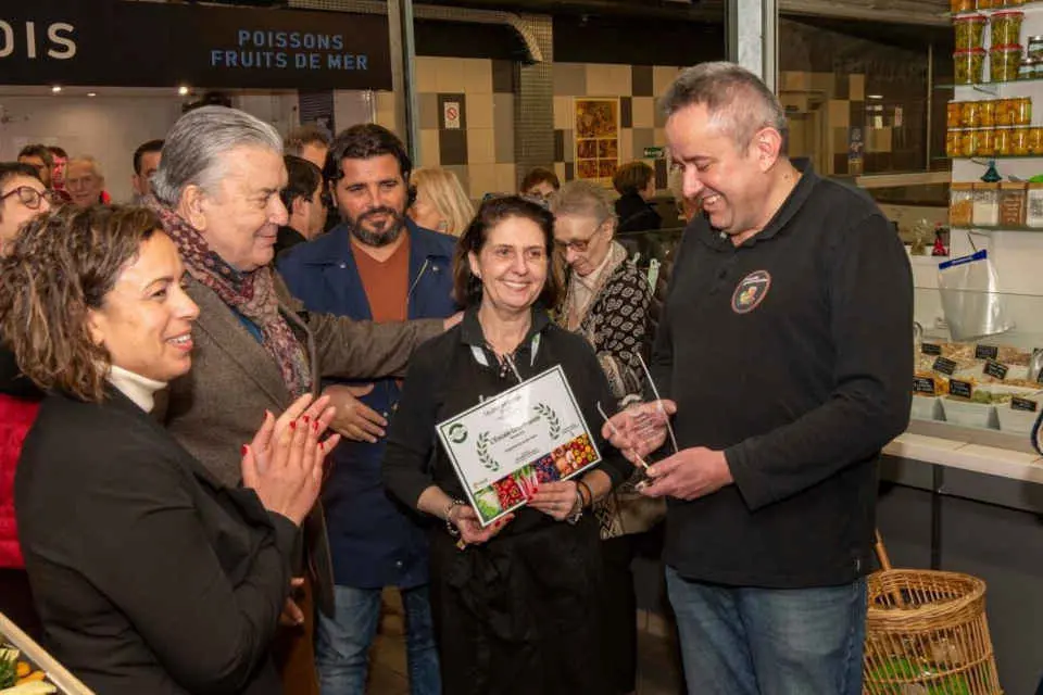 Effervescence, ce vendredi 26 janvier peu avant midi dans les Halles de Nîmes. Au milieu des étaliers, des clients et des objectifs des photographes, Jean-Paul Fournier remet officiellement à Isabelle et David Jacob le trophée de « Talents régionaux » dans la catégorie primeur sur marché. « Félicitations, c’est mérité : vos produits sont très beaux », apprécie le maire, en se félicitant d’une pareille récompense pour les Halles de Nîmes, qui célèbrent cette année leur 140 ans d’existence.