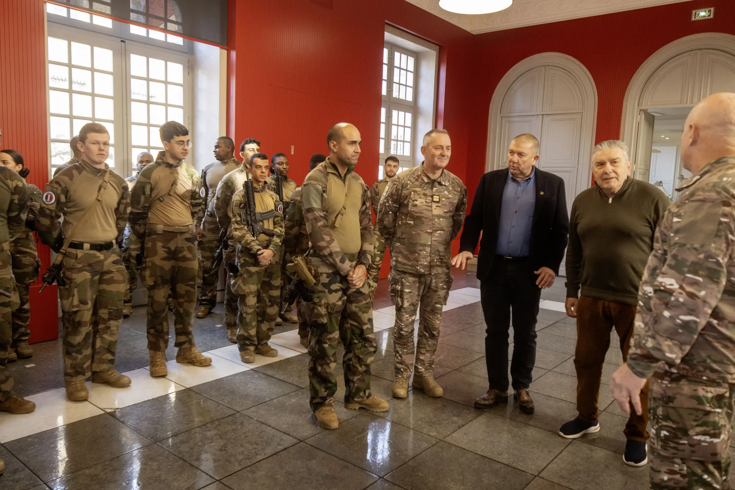 La réception s’est déroulée en présence, en autres, de Richard Schieven, Adjoint délégué à la Sécurité, Monique Boissière, Conseillère municipale déléguée aux Armées et au Monde combattant, Jean-Marc Campello, Adjoint délégué aux Jumelages, à l’Artisanat, à la Construction et à la Rénovation énergétique des bâtiments municipaux, ainsi que d'autres élus et du Général Stève Carleton, commandant la 6e Brigade légère blindée.