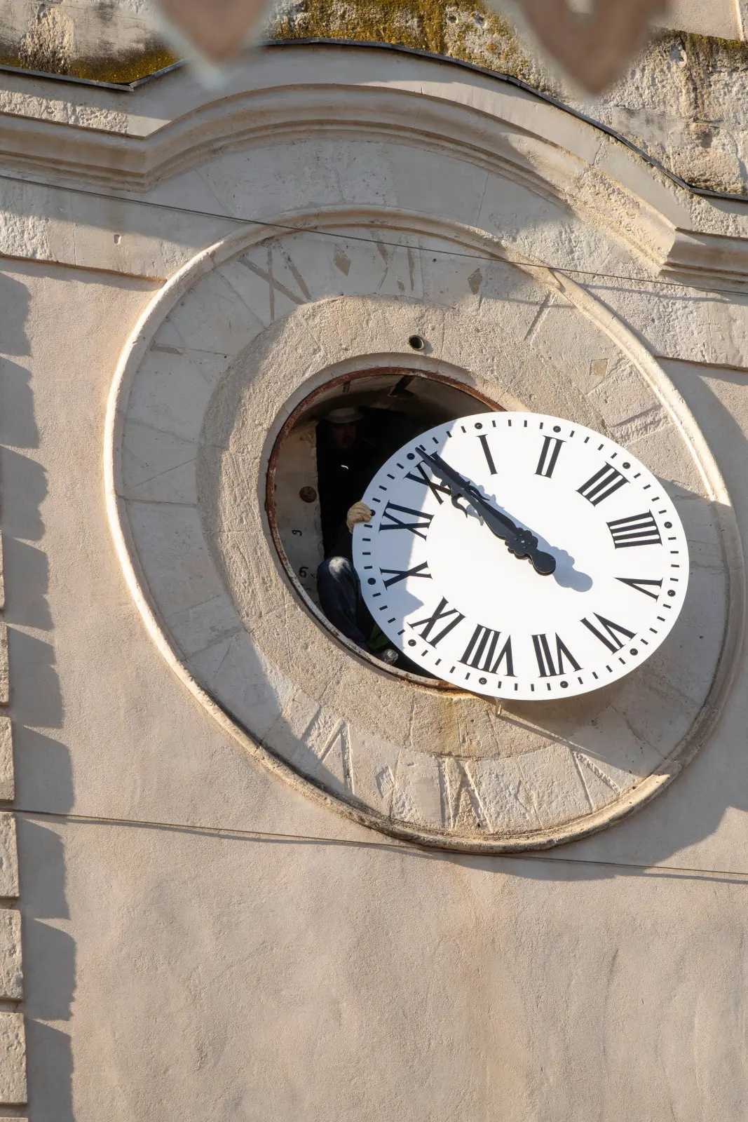 Ils ont été hissés un à un à la corde par l’extérieur, avant d’être fixés dans leurs emplacement respectifs, sur chaque face, à une quinzaine de mètres de hauteur. Des opérations réalisées sous le regard de nombreux curieux. A l’intérieur de l’édifice, les quatre moteurs, reliés entre eux et au réseau électrique, se remettront automatiquement à l’heure en cas de coupure.