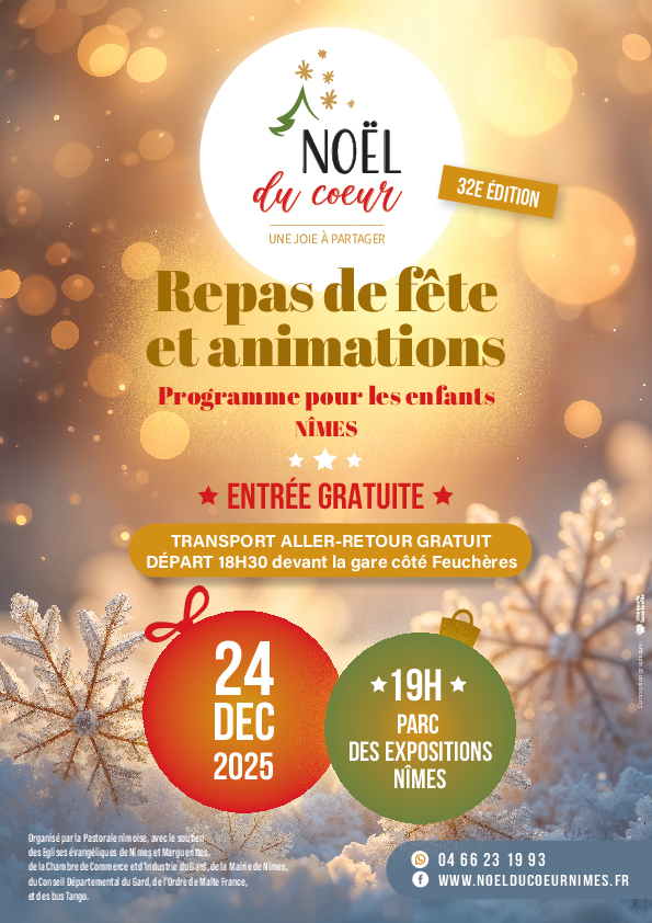 Le Noël du Cœur revient le 24 décembre au Parc expo à Nîmes pour offrir un réveillon chaleureux aux personnes isolées ou en difficulté. Gratuit et solidaire, l’événement lance ses inscriptions bénévoles. L’an dernier, 600 repas ont été servis grâce à 200 volontaires. Animations et navettes gratuites compléteront la soirée.