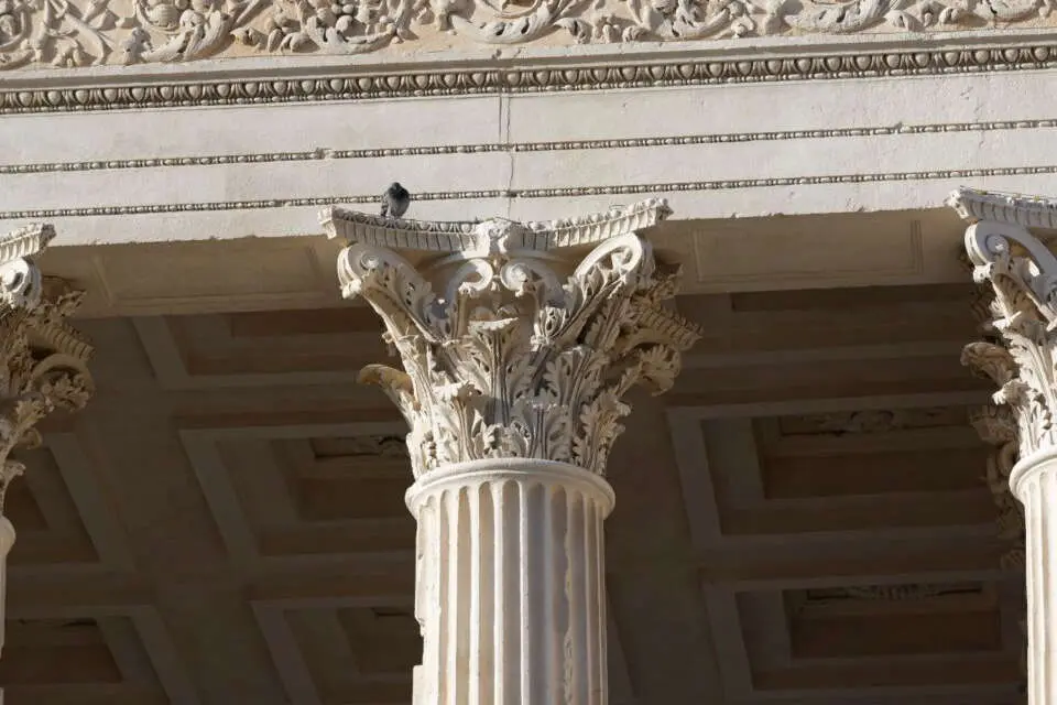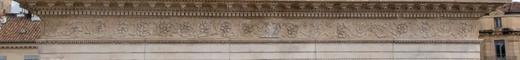 « Ce chef-d’œuvre d’architecture antique a traversé les siècles pour nous parvenir quasiment intact, soulignait en 2022 le Maire Jean-Paul Fournier dans un billet à destination des futurs inspecteurs du dossier Unesco, avec toute la beauté et la symbolique spécifique de son décor. » Un décor opulent (sur la corniche, la frise végétale qui court sur trois façades ou encore les chapiteaux de ses 30 colonnes) sculpté en pierre de Lens, dans un calcaire extrait à une vingtaine de kilomètres de là. La Maison Carrée de Nîmes, merveille incontestable.