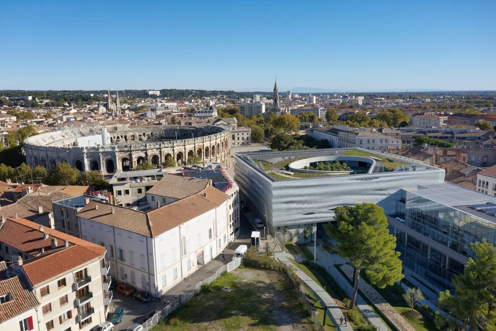 Le musée de la Romanité de Nîmes, à la fois scientifique et innovant, est aussi un lieu de vie avec sa librairie-boutique, son restaurant panoramique, son jardin méditerranéen, et son toit-terrasse à 360°, libre d’accès, qui offre une vue à couper le souffle sur les arènes et les plus beaux joyaux nîmois.