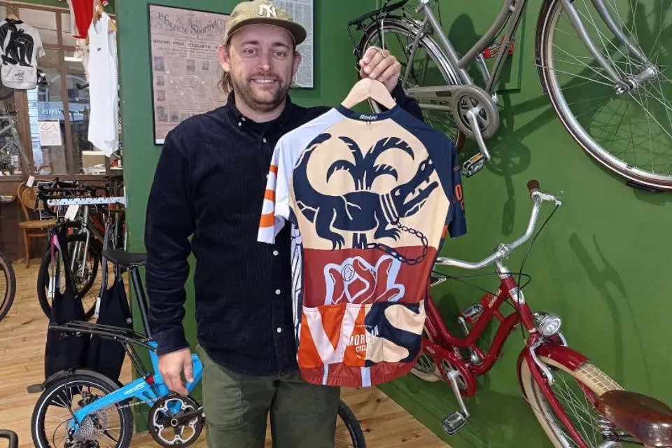 Depuis quatre ans, la boutique dédiée au vélo Morgan Cycles, rue de l’Agau, imagine chaque année un maillot qui célèbre la ville de Nîmes. Le dernier en date rend hommage à la Maison Carrée. « On a reçu les premières pièces le 29 septembre, date de la soirée qui a célébré l’inscription à l’Unesco », précise Morgan Champiot, le patron de la boutique.